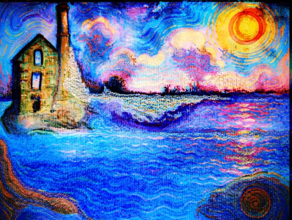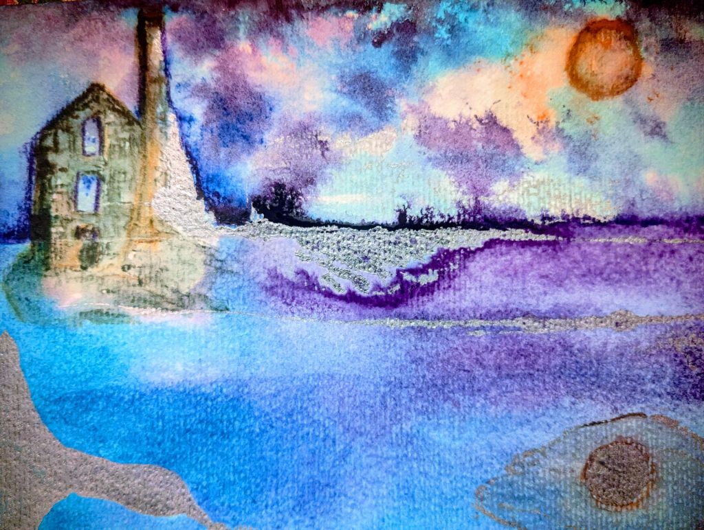 Today’s doodle has a derelict Cornish Engine House, a full moon and waterlogged moorland.