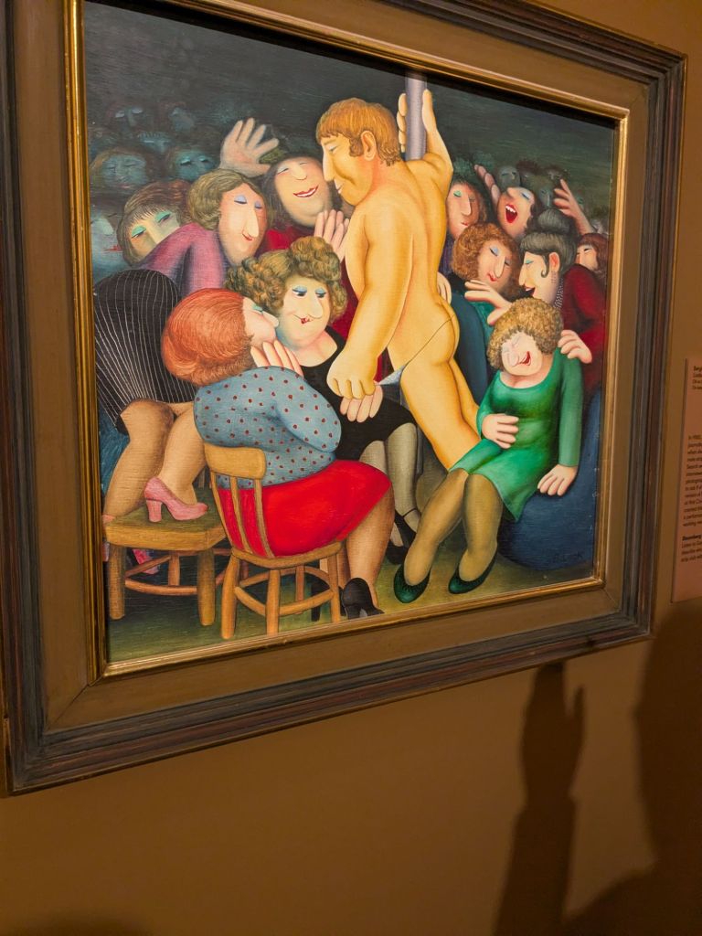 It is not often that an Exhibition of a famous artist’s work chimes so closely with my own life. I will write a more arty blog after another visit but today 3 paintings give me an easy feed into anecdotes. Elvira’s Cafe is very close to home. Before we moved here and were fully aware of the clientele of this cafe I ordered ‘ The Marine ‘ breakfast. Big mistake, I thought, stupidly, that the Marine word meant close to the sea. Oh no, the cafe is very close to the barracks of the Royal Marines. The breakfast was designed for military men with big appetites. I gave it my best but not very successfully. The meat sweats some hours later was a learning experience.