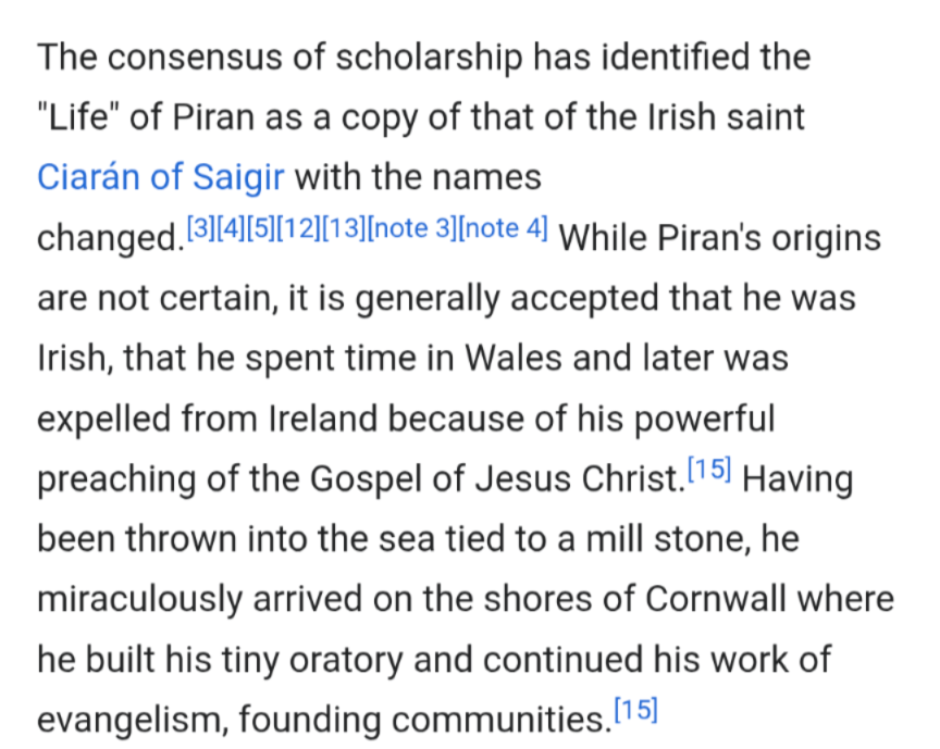 Alas with just a little research St Piran seems about as authentic a chap as many other Saints. Maybe invented, maybe living under an assumed name.