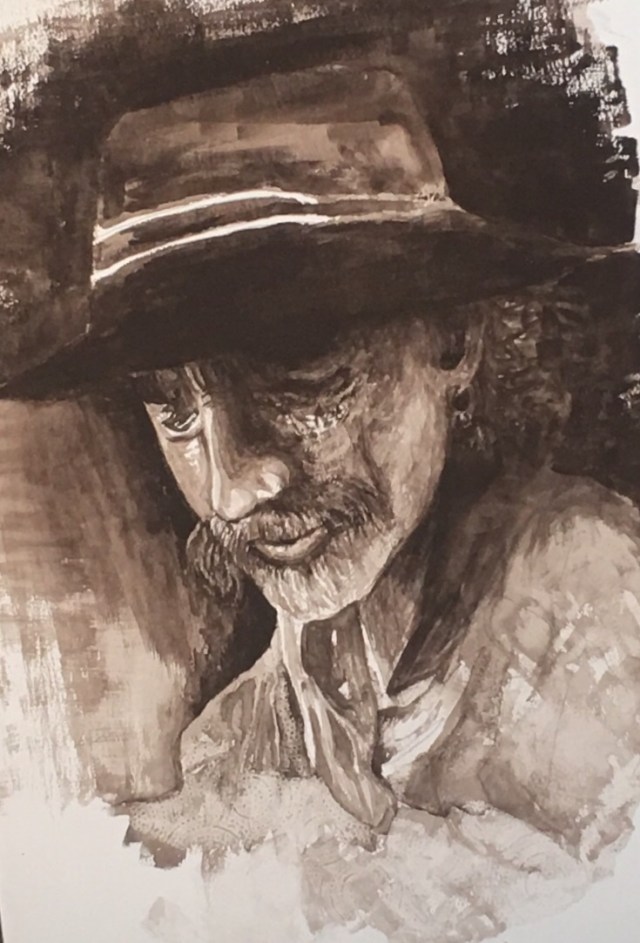 And finally an old school friend , Fred, we knew each other years ago when I was first taking tentative steps into watercolours. Social media keeps us in touch, I painted this from a photo on his Facebook page, this portrait is the first I have attempted since my delayed return to the medium. this was painted just using Isaro watercolour in Sepia.