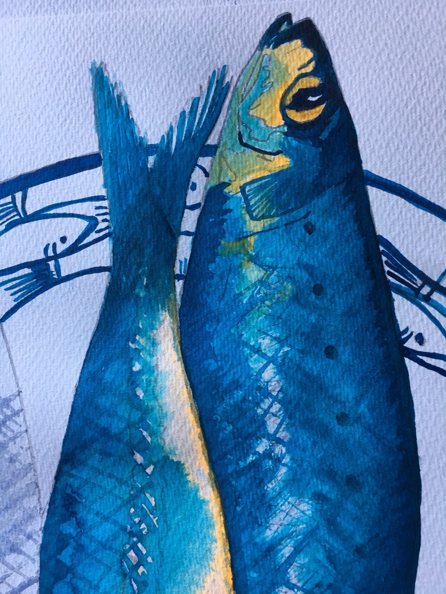 Fabulous paints are one part of the story, skill and technique are the things that need to be honed now. I’ve had some lucky breaks but fruits that look like a fanny and a sheep that could be a rockstar are moments to reflect on. Loose is the word most often bandied about in watercolour classes. By taking a slightly mixed format approach I think I would use the word serendipity alongside the ‘L’ word. I love to watch these slightly different watercolour formats jostle with each other on the paper. Sometimes they do half the creative work for me.