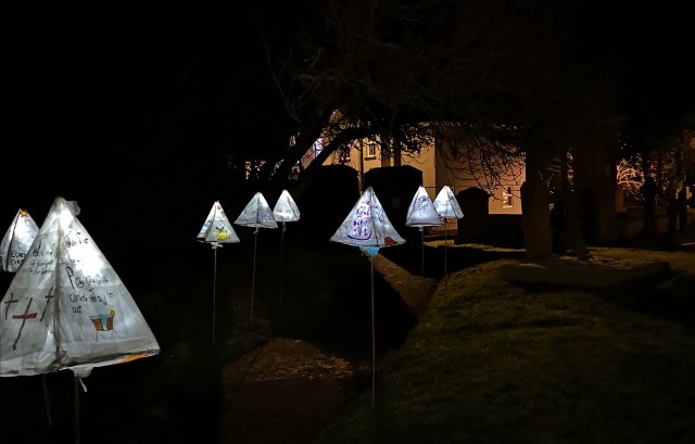 It’s a busy time in Christian churches in December. School Carol services fill the mid-week evenings. theoldmortuary overlooks a church. Last night’s school Carol Service had a lantern lit path leading to the church.