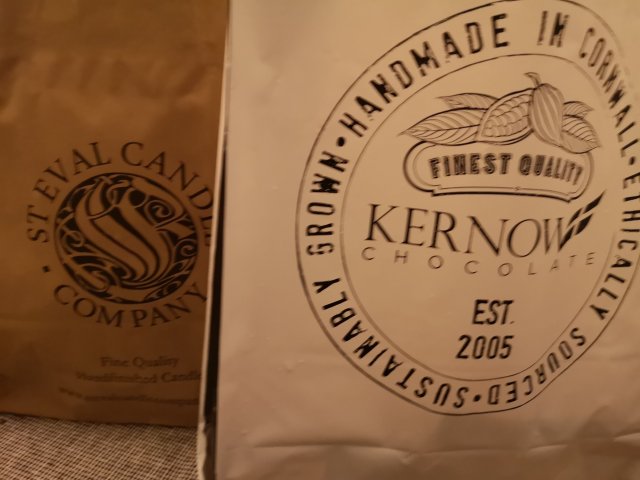 Google got us to St Eval first stop Kernow Chocolate. Admittedly no longer on the family farm but that’s where it started. Chocolate Stollen and a cup of tea warmed us up for the serious business of choosing chocolate. The Stollen was moist if anyone is interested. Gifts occured.