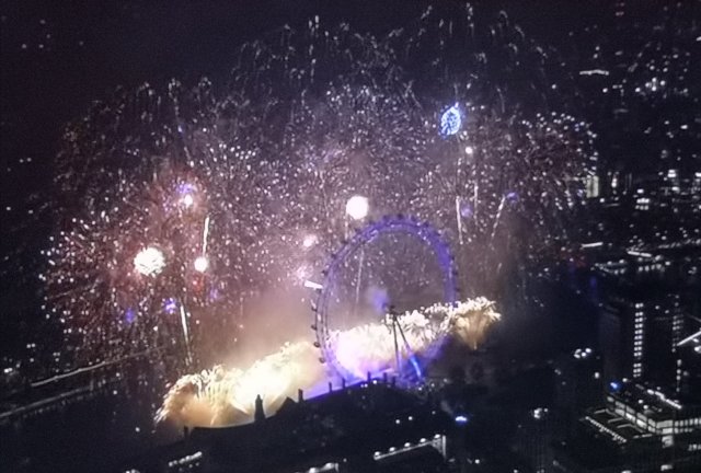 Four dogs at midnight in a confined space on New Year’s Eve might have been hazardously daft so we headed home about 11:30 and did what millions do and watched the BBC for Jools Holland with London Fireworks for midnight.