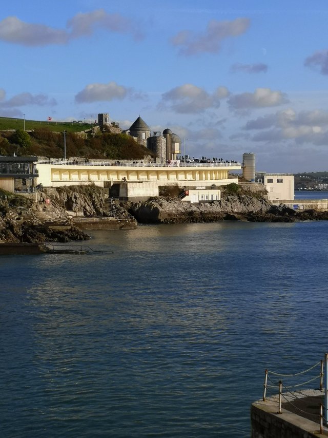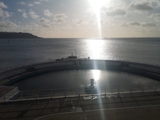 We basked in the winter sun, protected from the wind by the Collonades above Tinside pool.