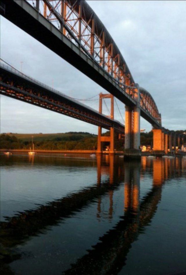 Trains and sunrise play a part in both photographs. Obvious in the Battersea picture , it is more difficult on the Albert Bridge Saltash. Just a bright straight line of reflected light on the Penzance to Paddington train as it leaves Cornwall.