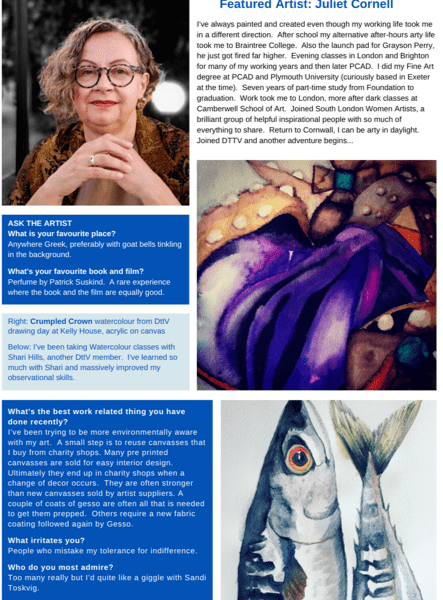 No need to blog today. I’ve just lifted these two pages from the Drawn To The Valley Artists Newsletter.