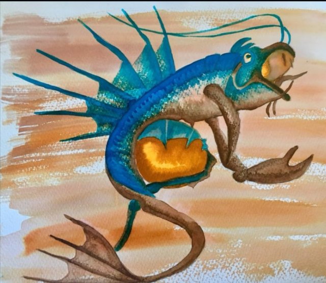 I used the fishy subject for a watercolour subject, minus the drumstick! Although a competent image of a skewered Leviathan kebab eludes me.