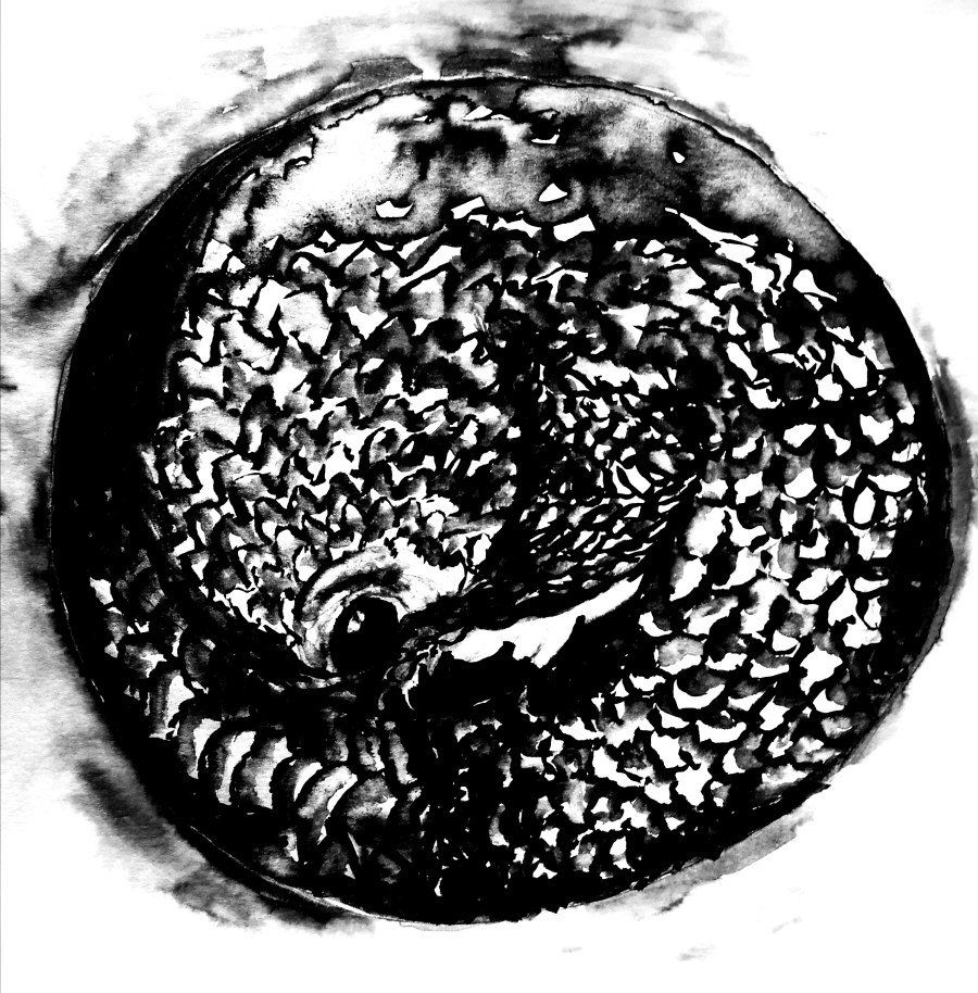 Another day, another Pangolin.Pangolins are the colour of a winter sea. I am immediately inspired to paint another cuddled- up Pangolin painted in the colours of my favourite winter sea. That of the Atlantic coasts close to my adopted home in the West of England. The greens, blues and browns of seas and minerals stirred up by storms and winds in the wet months of October to March , most years, are every bit as beautiful as turquoise tropical seas.