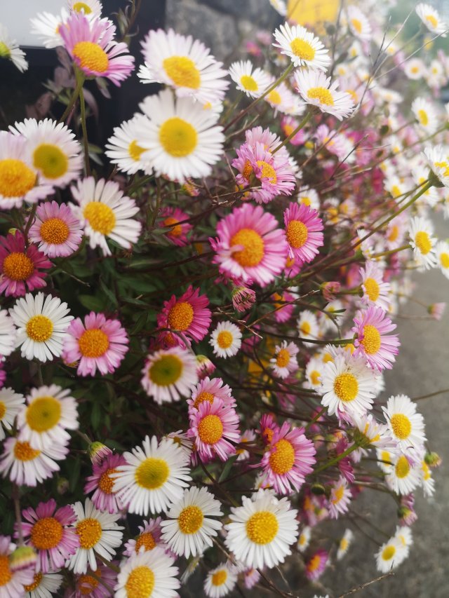 Daisies, however implausible it may seem, just stick themselves to the rock and grow. Early in the season they are lush and beautiful, later on the they get scraggy and ugly. Not Surprising really.
