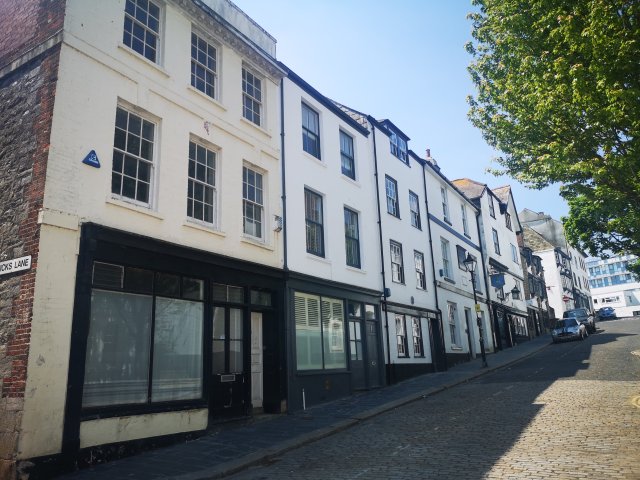 The somewhat dull block of flats was built on the site of The Old Mayoralty House.