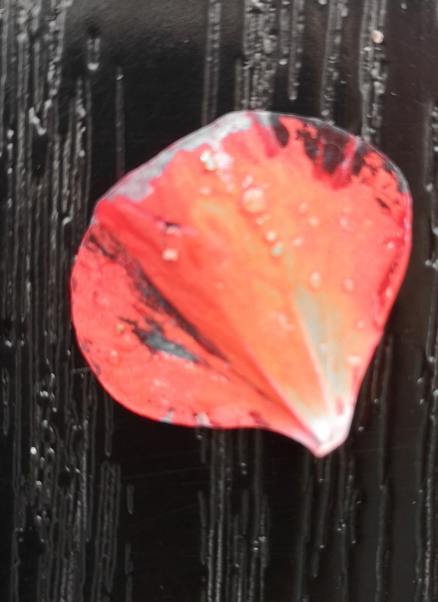 The first one was inspired by this photo, of a geranium petal stuck on the front door.