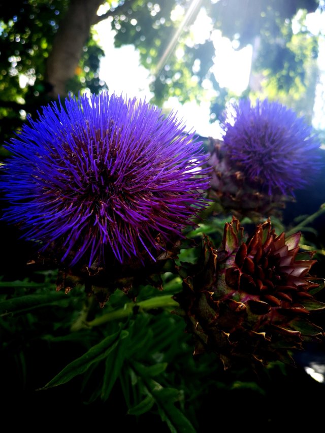 The Artichokes are a gorgeous blaze of hot summer pink at the moment. They will get bluer in a day or two, some summers they deepen to a Klein or Majorelle Blue.When the Artichokes get bluer they tend to attract red-tailed bees. Something to look forward to later in the week.Meanwhile back to Blousy. I’m not sure Artichokes quite fit the bill.