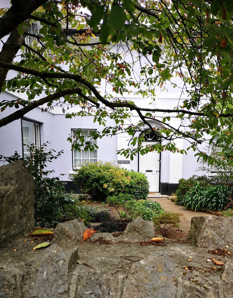 Totnes turned out to be quite the adventure. Two last pictures a lovely calm Presbytery with just one perfect autumn leaf to give a flash of orange to an otherwise Lilac view.