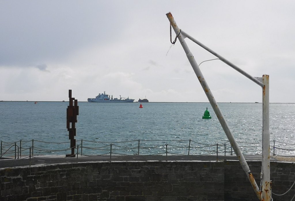 If I were a sound artist I would record twenty second snippets of the conversations that occur as People get close to it. Then play them in the echoing paths near the Tinside Lido that overlooks the sculpture at a distance.