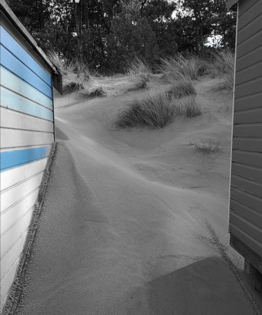 I have a lifelong obsession with beach huts, starting with Frinton-on- Sea on the Essex Coast, followed by the South Coast between Brighton and Worthing, then the Kent coast at Whitstable. Interspersed by the beach huts of the Norfolk and Suffolk coast which are the ones I’ve substituted for the non-existent, in the real world, Plymouth ones. Plymouth does have beach/ coastal cabins which are built into the cliffs around Plymouth Sound and fabricated from concrete with sturdy doors, nothing like my fantasy but I’m sure gorgeous in their own way. The vivid dream even gave me a texture to its imagined doors. Knowing full well that I love a bit of distressed and weathered wood.