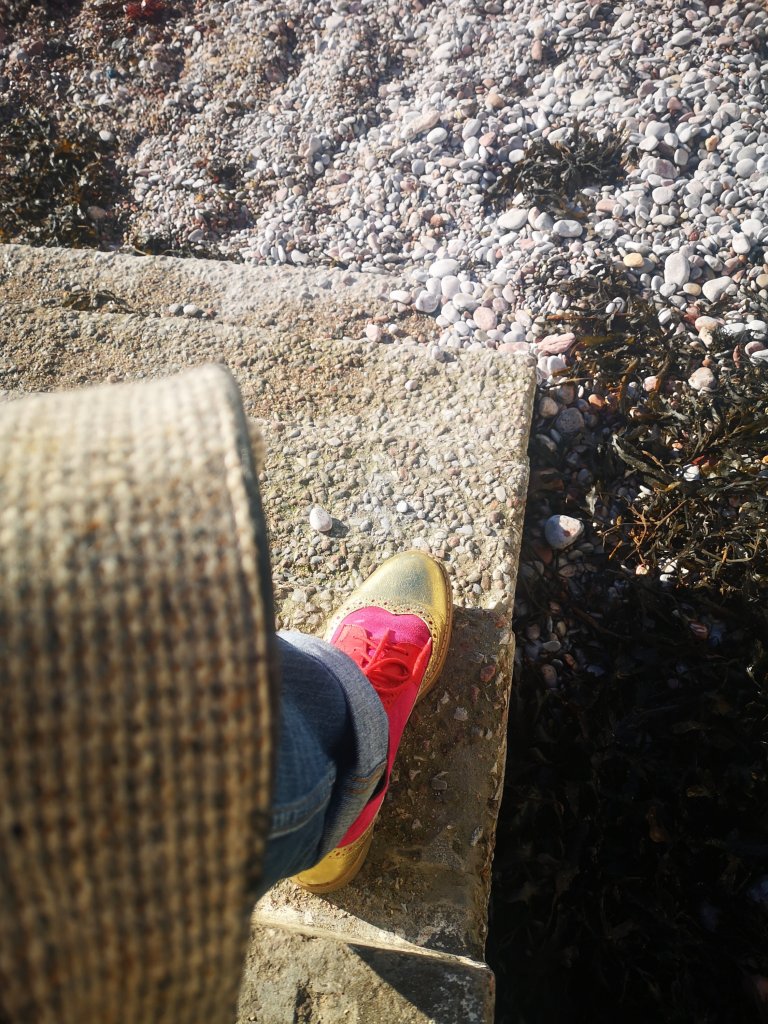 Dressed for the cold, we felt as warm as toast. I’m wearing a tweed coat I picked up at a charity shop over the New Year. It was in the window and the subtle colours called out to me. What a find. A Saks 5th Avenue brand, every edge is bound with leather . A Transatlantic coat to keep me warm while I look out over the Atlantic. Not that I would have dreamed of scrabbling about on rocks in it if I had actually bought it in Saks. Truth be told the only time I could ever have shopped in Saks I needed an afternoon sleep. Rooftop bars and the New York tradition of free pouring spirits meant I was not a very effective tourist in the afternoons!