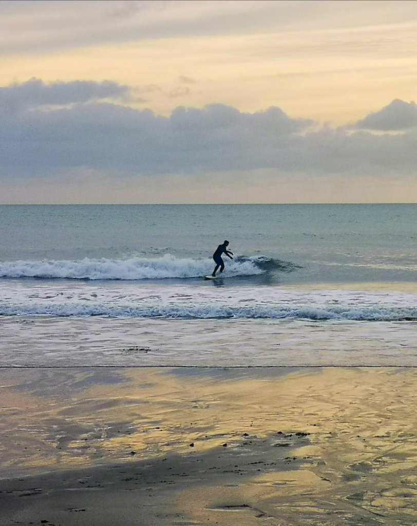 Our hours exercise took us to a quiet beach where I got three pictures of an annonymous surfer. There was a bit of blue to carry on the colour theme . Hopefully, with the arrival of a vaccine, we can all ride a wave of recovery.