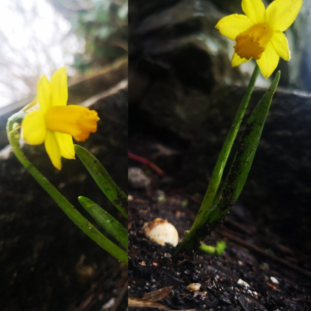 Being focused on just keeping upright has had two bonuses. Firstly this tiny daffodil , who against the odds, is growing through tarmac, near a busy cut through. In normal times the views here are spectacular so no one looks at the ground. I cannot imagine he will be here long.