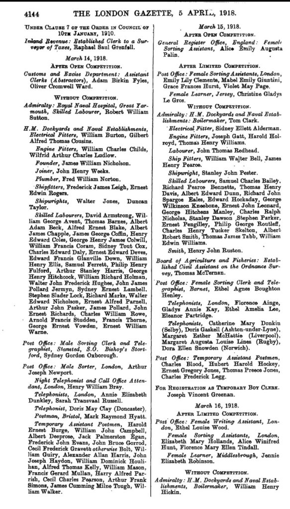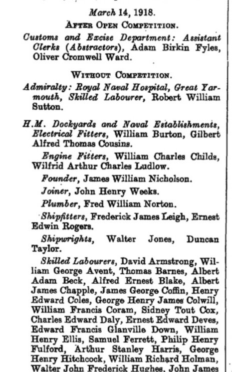 A chance finding in the London Gazette shows us that Ernest Edward Deves was a skilled labourer in Royal Naval Dockyards.