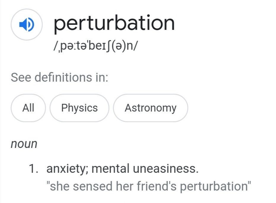 Perturbed is a very useful word but I had never expanded it to perturbation.