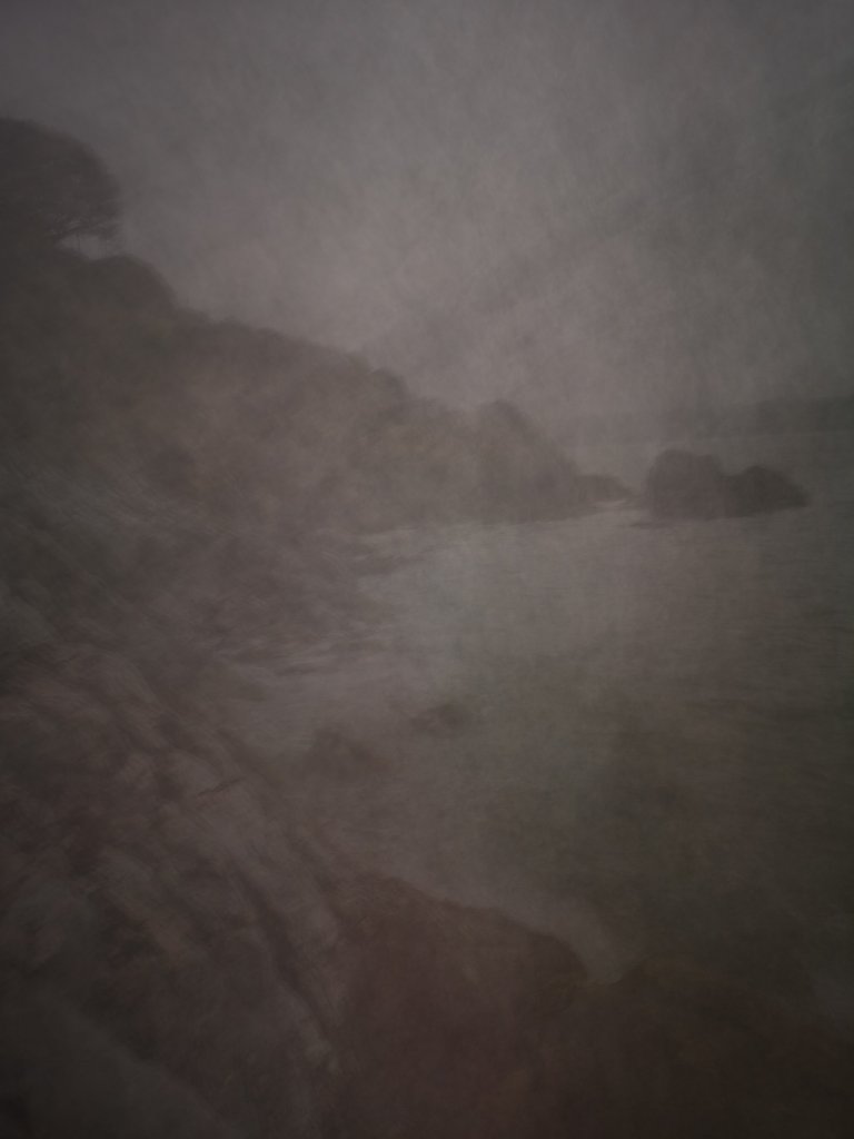 Really cold fingers after our swim produced this curious image. It looks like a photograph produced on a glass plate from the earliest years of photography. Same location as above.