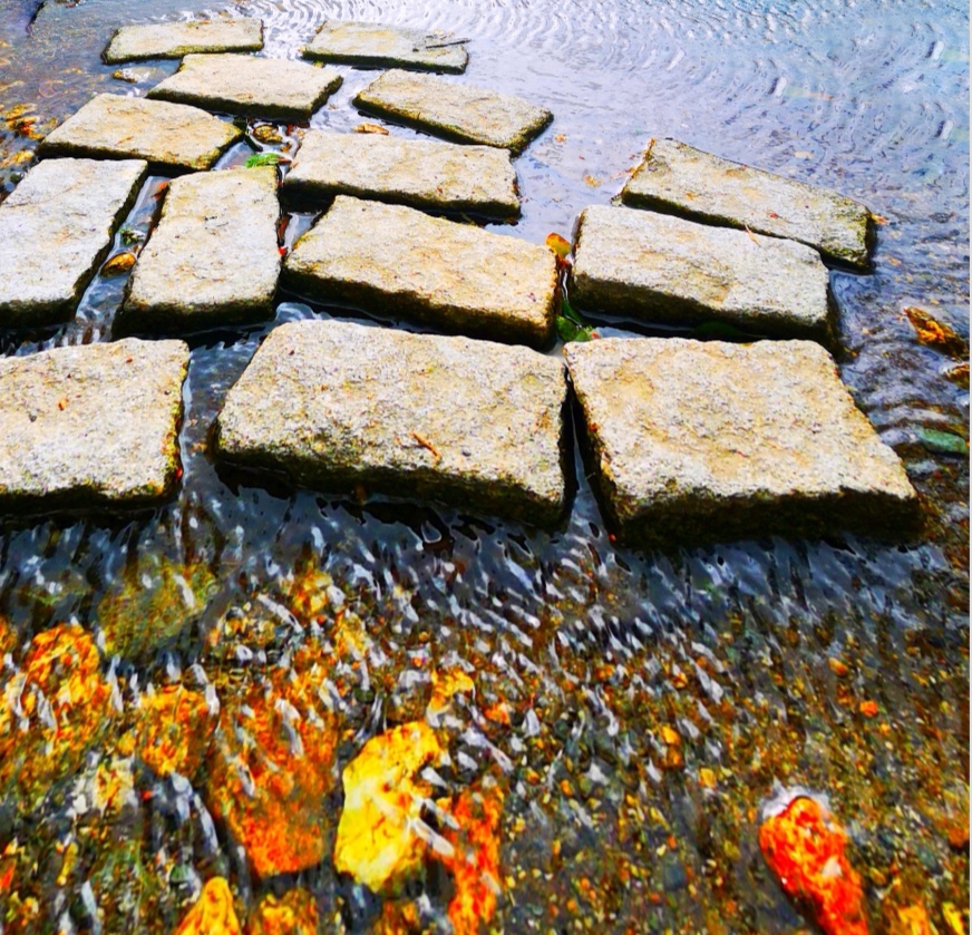 Spring Flowers were the main feature of our walk but these stepping stones were the stand out image of the day, caught, as they were in a brief moment of sunshine.