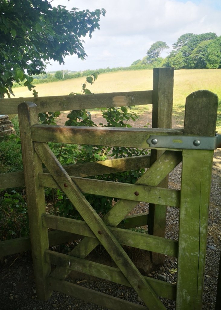 On the footpaths that follow the ancient paths around Feock there are many ‘Kissing’ style gates. Primarily this style of gate enables easy access and egress to a heavily laden human using only one hand while keeping livestock safely enclosed. The word Kissing could simply be a descriptive of the mechanics and structure of the gate where moving the gate allows the movable part to touch, or kiss, either side of the boundary. Almost certainly the name is not historically used for the meeting of lips. More prosaically the name is most likely derived from Kisting, an old word for casket. Kissing gates were originally designed to allow coffins to respectfully be moved across boundaries without the need to place the deceased on the ground. Old kissing gates are found on footpaths near to old grave yards, in all directions, which makes the original purpose a much more plausible one than a chaste place to lock lips.
