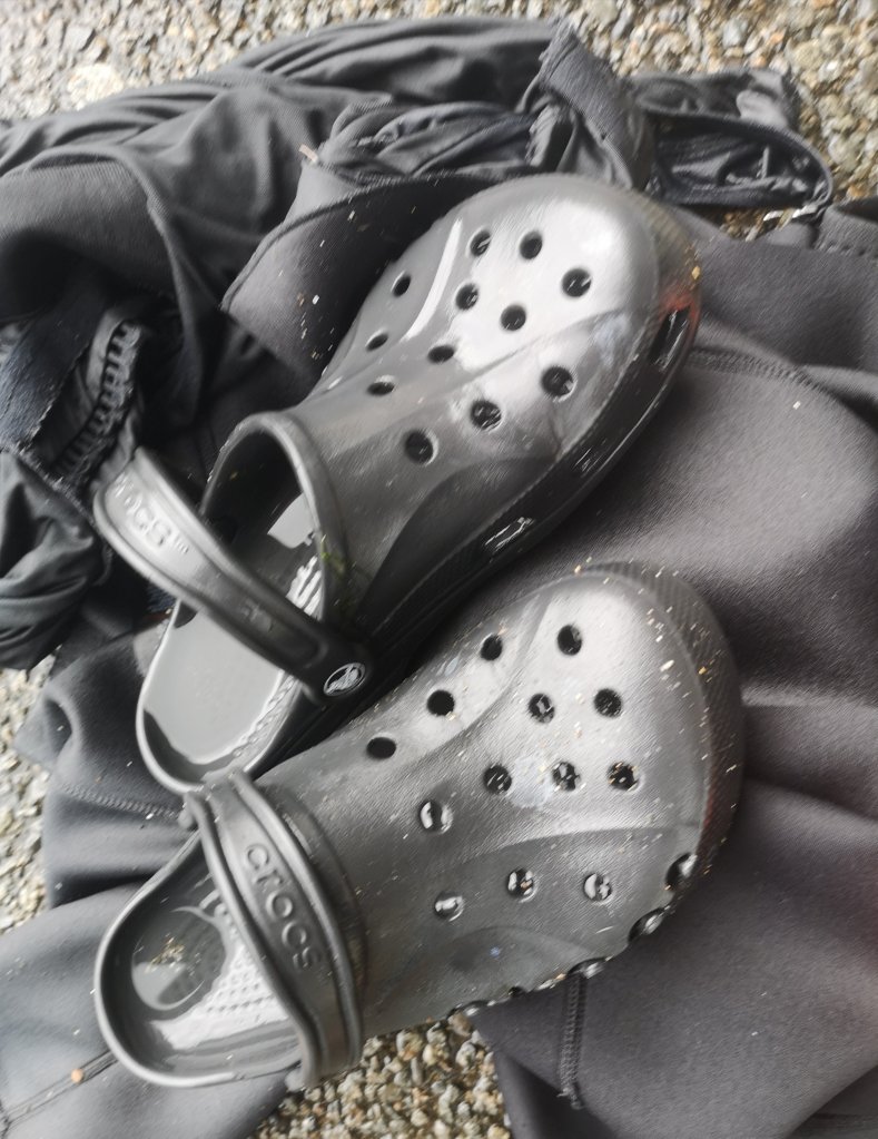 Hugging was allowed!!!! The Monday morning bob took on quite a different turn when our usual single file entry into the water broke out into serial hugging. Close bodily contact in Neoprene had a scintilla of Punk about it but in broad daylight, by the sea, we probably looked less intimidating than Punks and more like over enthusiastic seals. There are no photographs of this spontaneous eruption of hugging, that is often the problem with sponteneity, no evidence. Instead I can offer an image of recently disguarded swim wear.
