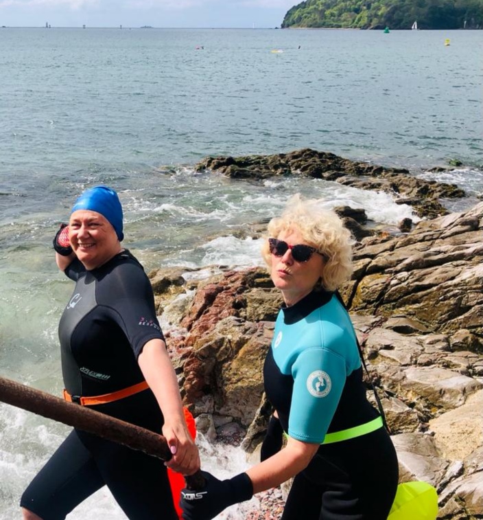 Not only was hugging a first for today but getting drenched post swim was a first. Weve been bobbing for about 6 months and have never experienced such a downpour as we did today while we attempted to dry and dress post swim. With the relaxation of indoor regulations we could all make a dash for the concrete shelter that houses a couple of benches for people to enjoy the view, protected from the worst of the weather. An old chap was perched on one of the benches watching the rain cascade all around him. He cannot have imagined that his morning constitutional walk was going to be enlivened by 5 woman invading his space to dress and natter. He stoically focussed on the distant horizon, while we tried to accommodate our damp bits into reluctant, but dry, underwear followed by outer clothes that wouldn’t go on easily because the rain had soaked them. As a brief break in the clouds allowed a shaft of sunlight to hit the tarmac he was off. The wheels on his zimmer frame sparking and carving trails in the puddles, so wide and frothy that a jet ski driver would have been proud of them. So intense and speedy was his need to escape and and put all that poorly concealed naked flesh behind him.