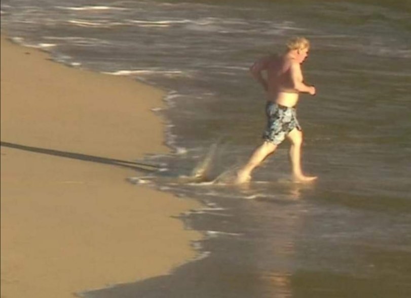 Stan took to the sea very calmly. There was a lot of fussing to get his life jacket on but even though straps went in some curious places he was a confident man when standing on his board.