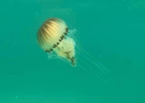 Yesterdays changeling weather also brought new swimming companions to the bay. Not the sort that make us gasp with excitement, more a tingle of anticipation, and certainly not something Lilliputian me would like to meet in a rockpool.
