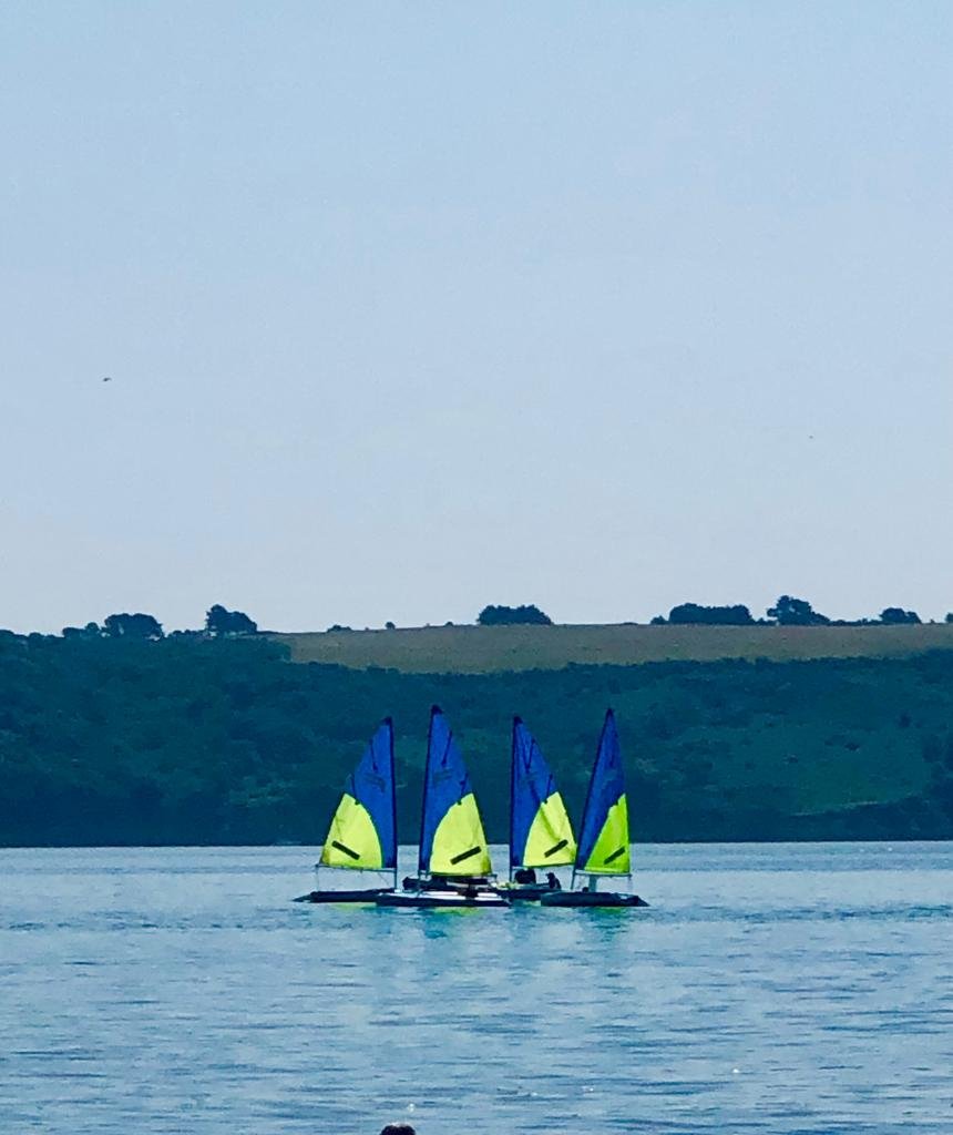 Very little wind and the tricksy currents mentioned earlier led to these novice seafarers being rescued moments later by their instructor in a motorised rib. Vivid green was also a feature of this lovely window on our walk away from the beach.