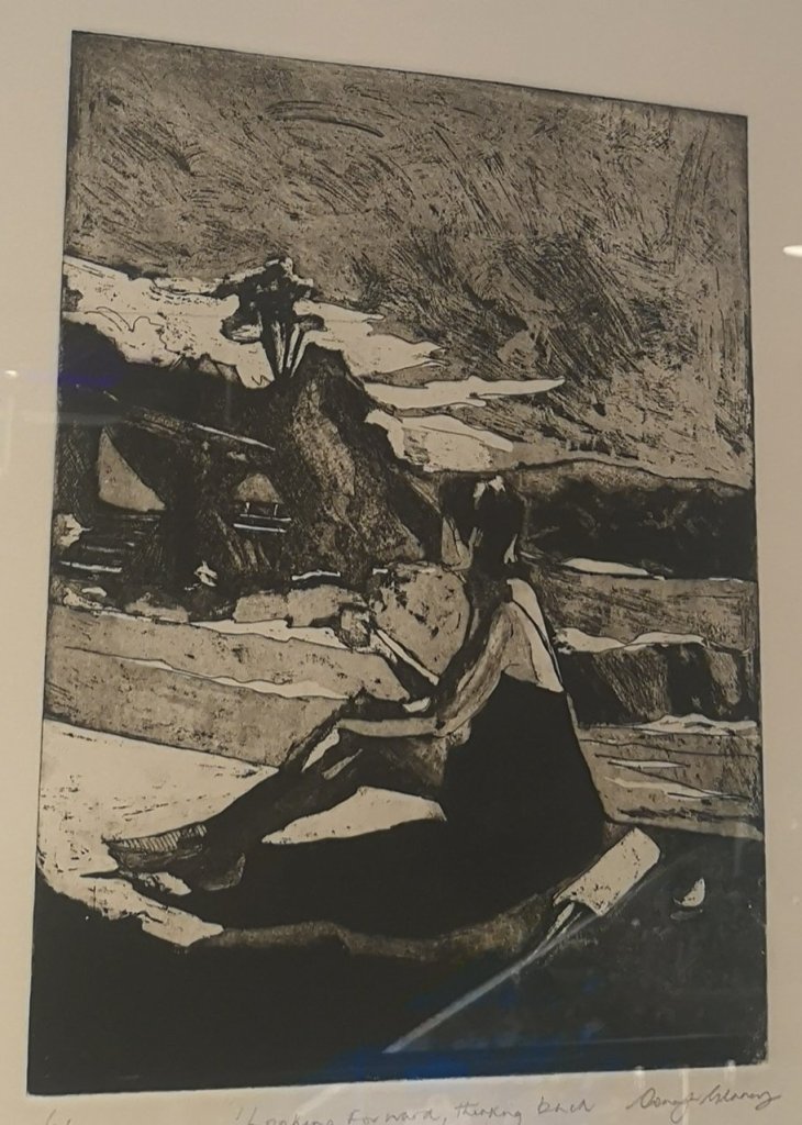 Tamar Valley Printmakers are the British group participating in this exhibition. Several members of this group are also members of Drawn to the Valley, one of the art groups I belong to. I tried to get good photographs of the prints of people I knew, even if only a name recognised from a membership list. It wasn’t always possible as the lighting in the theatre can reflect quite distractingly on the exhibited works. Sometimes I could only capture part of the image without getting unwanted reflections. My apologies if I missed anyone.