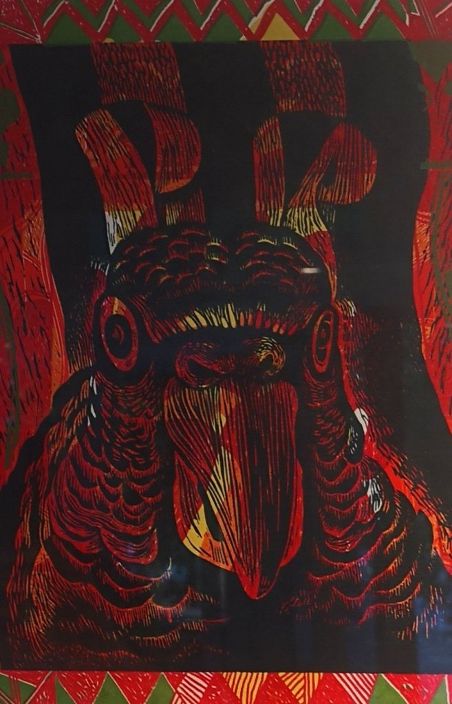 Just to clean your mind of Mr Trump I’ve included one print not created by a Drawn to the Valley artist. Boricua by U.S Printmaker, Adrian Tió. Not representing the European migration story, his work brings Puerto Rican flamboyance to the exhibition and reminds us that Mayflower is just a tiny part of the story of the modern United States.