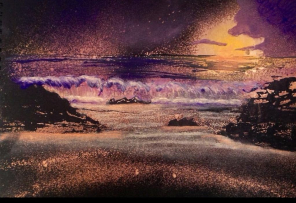 Pollen II , above was sketched in Greece and then painted at home. A roadside plant possibly a weed bursting with pollen. The paintings that emerge from holiday sketching follow no real theme or style.