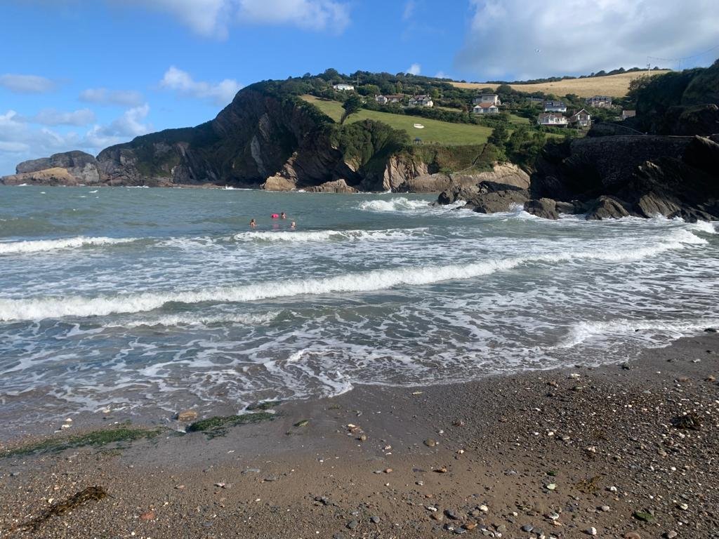 Yesterdays swim was extraordinary. Exhilarating and epic, the thrill and managed risk of an unknown beach made our morning swim just delicious. The previous day we had met some fellow coast path amblers. The woman expressed an urge to swim in the sea, her male partner was somewhat dismissive of her diligence or ability to do such a thing. We told her we would be at the beach at 11:30 and at 11:30 she strode into the sea to join us with no sign of her doubting man.