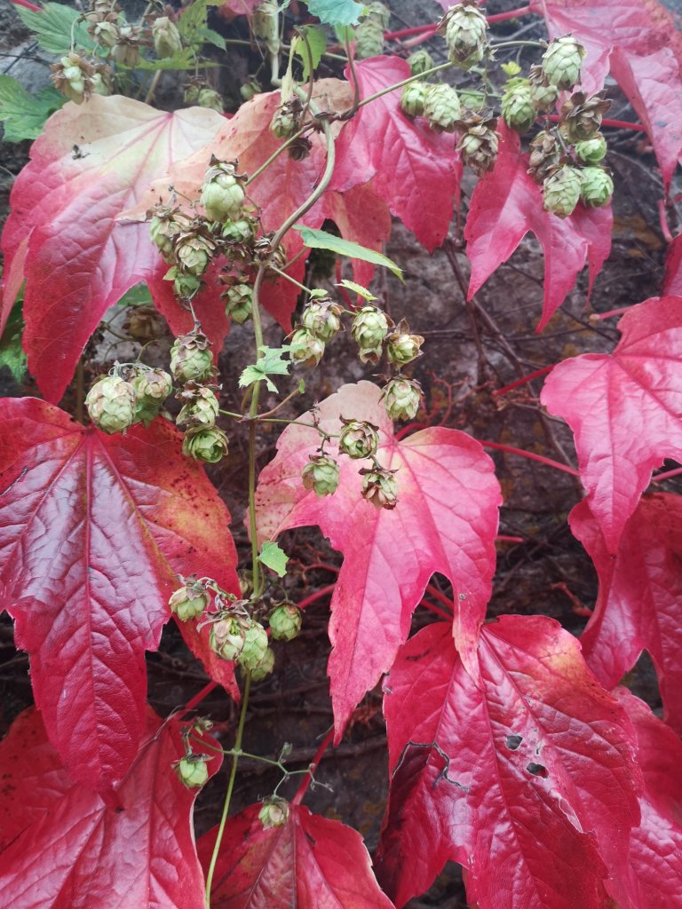 On our walk to the beach we passed this glorious Virginia Creeper and Hop combination on a wall. A sure sign Autumn has arrived and is settling in for a few months.