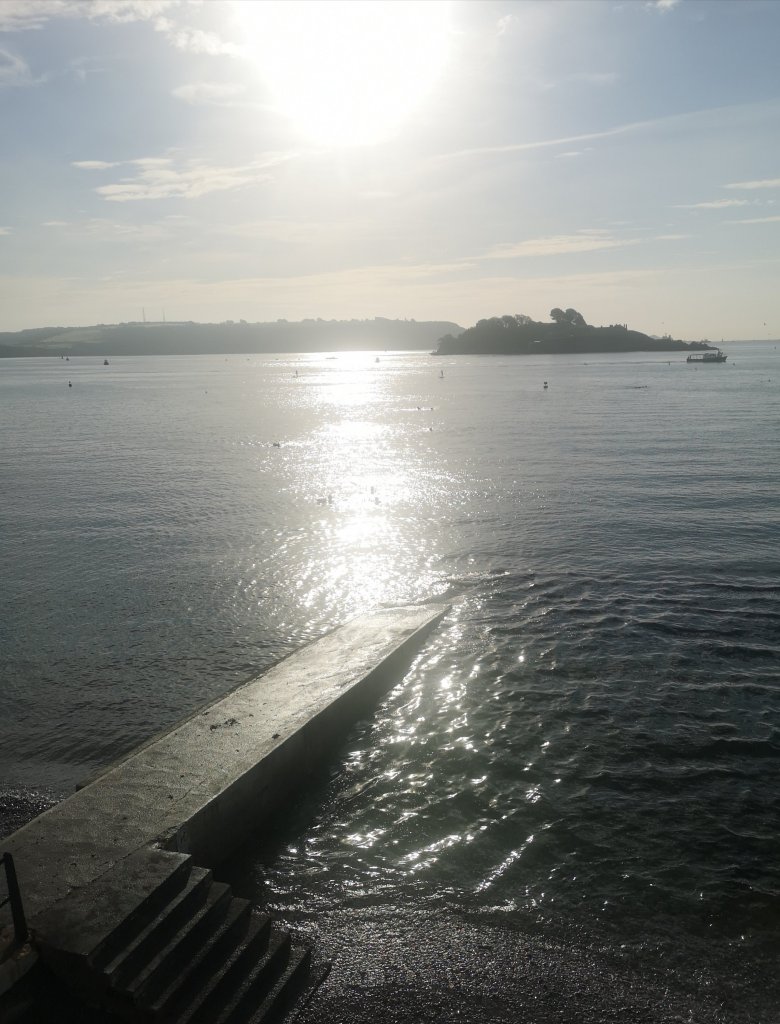 Yesterday evening was the first time for a few weeks that I was able to walk along the coastal path nearest to the swimming beach that the ‘bobbers’ prefer to use. The beaches and the coastal path beyond the Artillery Tower have been closed for essential maintenance. Although the path is now open, the steps and slopes that allow us to get into the water at high tide are being refurbished.