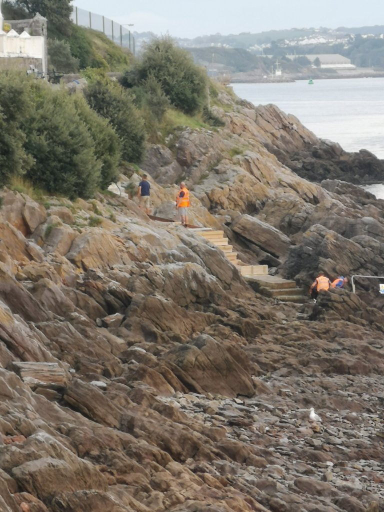 Today is a red letter day. This cement mixer delivered the last pour of concrete to the new steps and slopes of our swimming area just as the tide was receding yesterday evening. Over the weekend the wooden shuttering will be removed and the concrete left to cure for a while and by next week we should all be able to swim at our favourite spots.