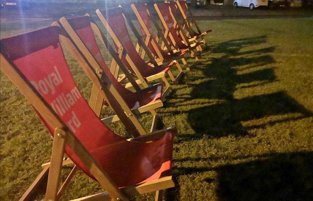 The green is also well stocked with deck chairs. A reminder of pre-Covid times when we could come here to watch Open Air Cinema, Live Theatre or live streamed sports events.