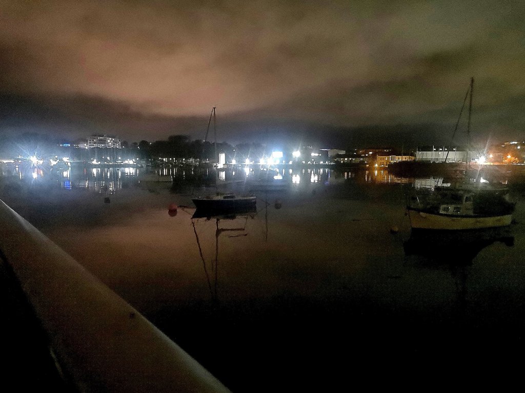 On the other side of the yard we walk along the side of the River Tamar and Stonehouse Creek. A business and industrial area that is always lit up at night.