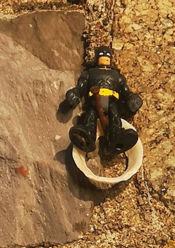 There is a new character hanging around in our changing area, taking in the sun while straddling a nail and a limpet shell.