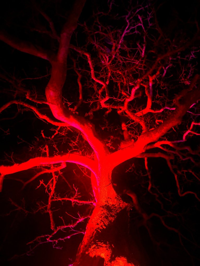 The dogs have the unique experience of having a wee while illuminated. Something that they are completely indifferent to. Were the same thing to happen to me I might also struggle to see the beauty of the moment.