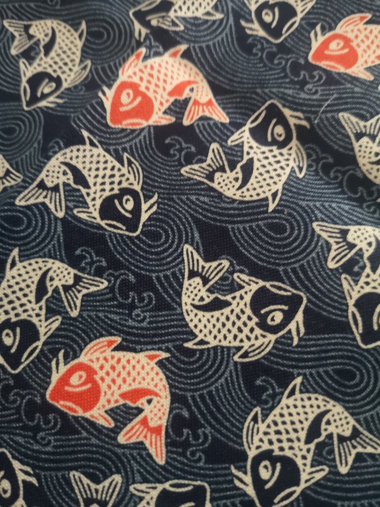 This Calendar lives in the studio/work room and really has not seen much creative action this January. Certainly some domestic sewing and the beginning of another Womble this time one with links to Hong Kong. Which allows me to show you a small remnant of lovely blue carp fabric, and at the same time wish you a happy lunar New Year.