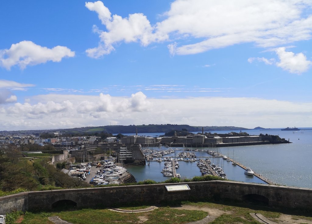 And then the sun came out properly! After 4 days of mist with just an occasional sunny break through, Monday, finally, delivered on some good weather. Our morning walk took us to Mount Wise overlooking Plymouth Sound and the Stonehouse Peninsular. Looking back towards our home and regular swimming, bobbing, location.