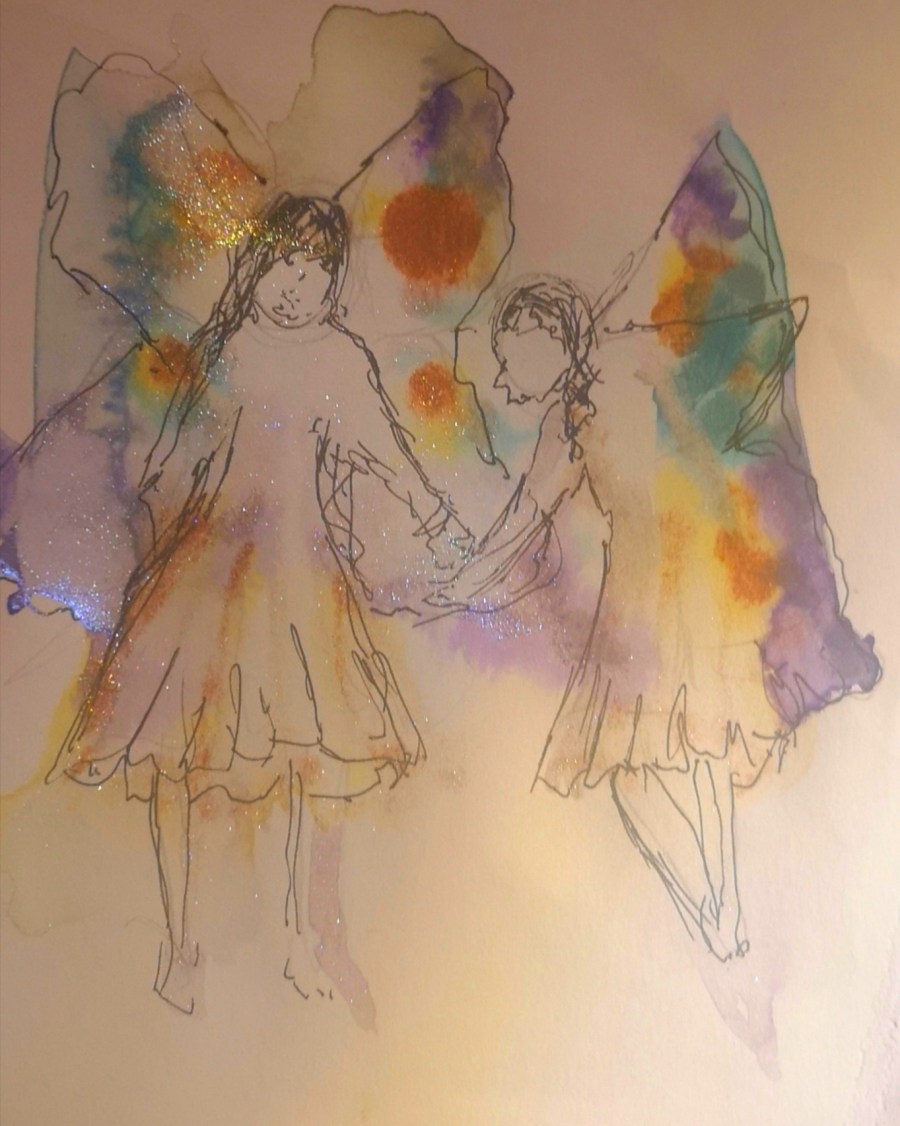 Two girls, dressed as butterflies, arrive to visit the Natural History exhibition.
