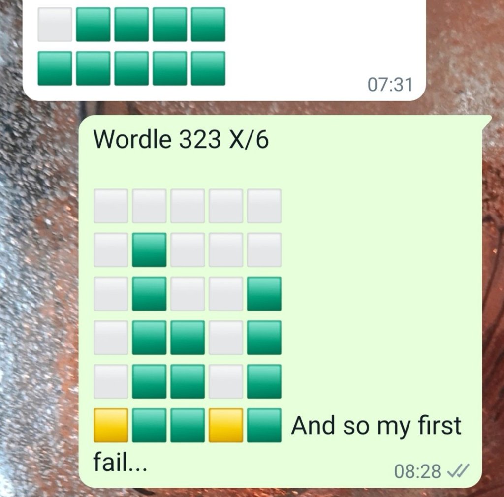 None of this really explains my opening sentence, but I had a shocking nights sleep last night. Mostly due to eating a lively Levantine soup too late at night, reflux and a vivid imagination kept me in and out of sleep and this morning I had my first Wordle fail.