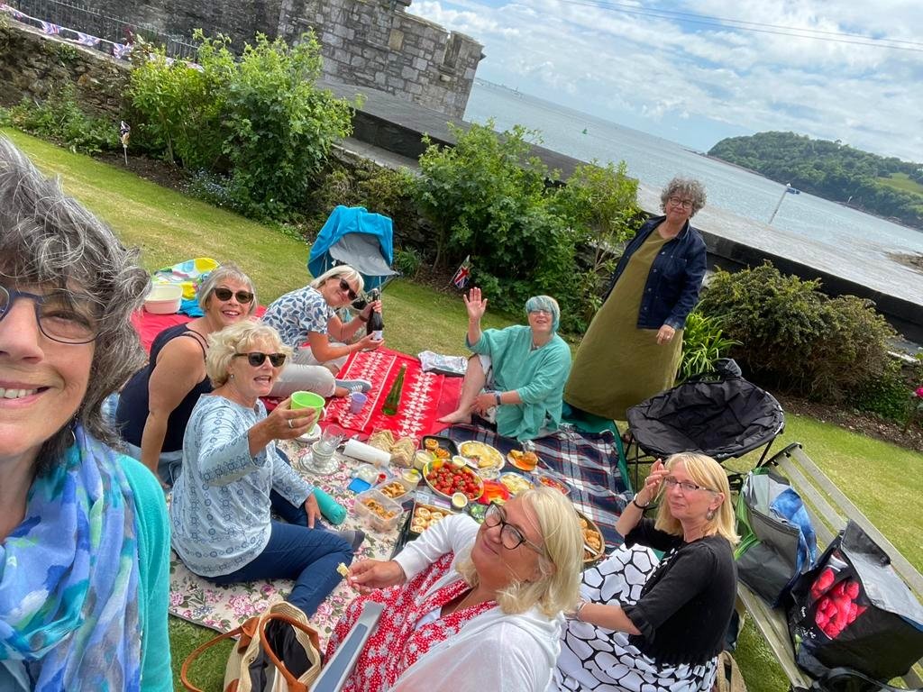 The bobbers got together in their usual place, Firestone Bay, to have a dry bob. A bob that does not require immersion in the sea but that does involve food and nattering. We gathered for a picnic at Stonehouse Lawn Tennis Club for a picnic overlooking our usual swimming spot.