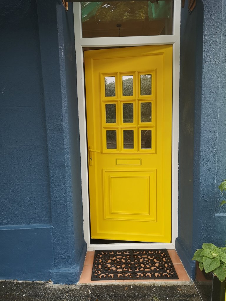 Meanwhile the outside of our house is being given a big makeover. Dark blue masonry paint and a yellow front door. The decision had been made and the paint purchased but moments before the paint was applied I was still checking Pinterest to see if the colour combination worked on other peoples houses.